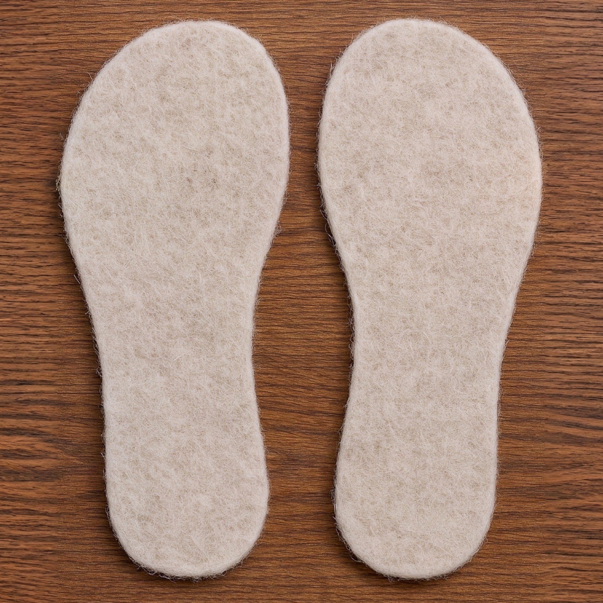 Felted wool inner soles are made from 100% pure wool felt, sourced from Australia or New Zealand depending on supply. These wool insoles are great because they naturally regulate temperature, keeping your feet warm in winter and cool in summer. They also wick moisture and have anti-microbial properties, which helps prevent sweat and bad odors. Plus, they provide natural insulation, cushioning, and shock absorption, molding to your foot for a comfy, custom fit. Best of all, wool is a renewable and biodegradable material, so these insoles are both eco-friendly and sustainable.